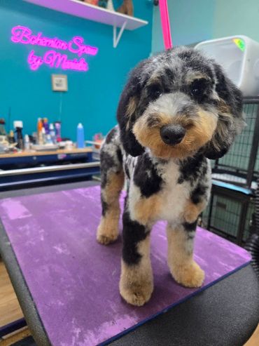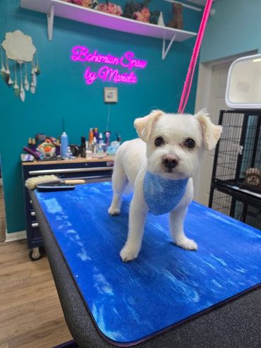This includes: Blueberry facial, Shampoo Bath, Conditioning Bath, Brush Out, Nail Trim and Ear Cleaning